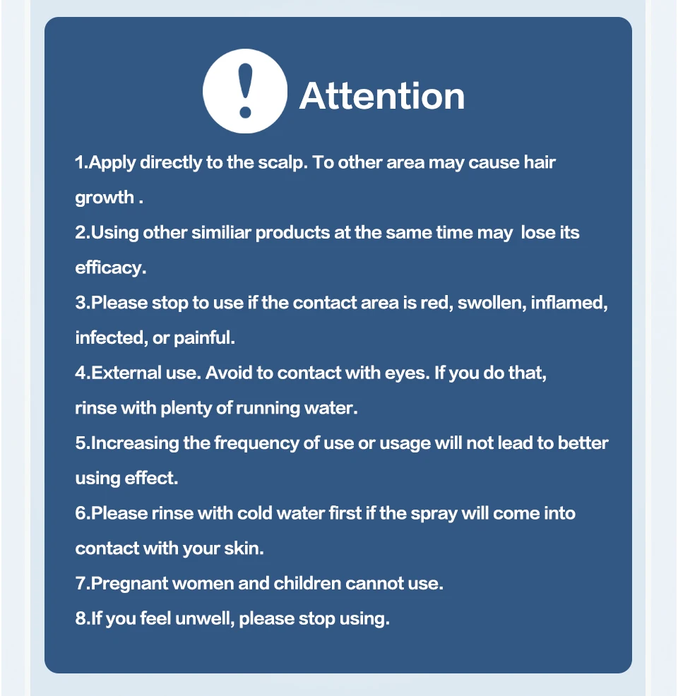 1.Aplique diretamente no couro cabeludo. Para outra área pode causar crescimento de cabelo.