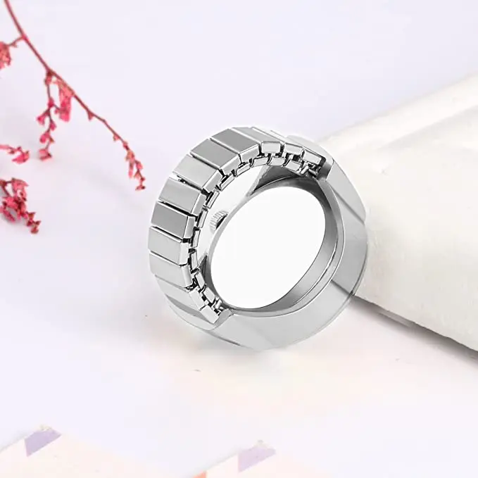 O elástico é fácil de colocar e tirar, adequado para dedos de todos os tamanhos. Acessórios fashion para roupas diárias. Não é apenas um anel, mas também um relógio.